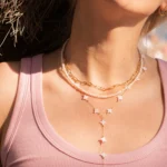 Išskirtinis ilgas vėrinys, kuris taps nepakeičiama jūsų stiliaus detale. Minimalistinė, bet prabangi kriauklėmis padabinta ir paauksuota grandinėlė su perlu – rinkitės pagal savo nuotaiką.